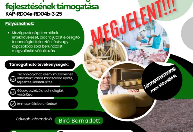 Élelmiszeripari és feldolgozó üzemek fejlesztésének támogatása