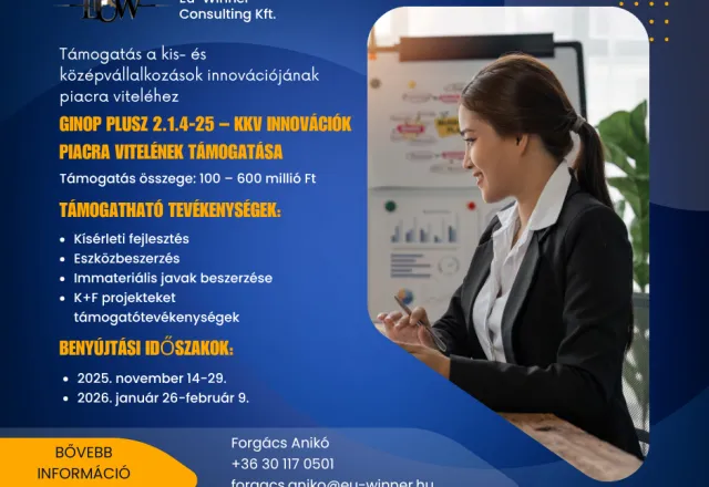 GINOP Plusz 2.1.4-25 – KKV innovációk piacra vitelének támogatása